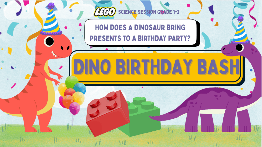 Come with us on a prehistoric adventure where kids become the heroes of a dino birthday bash! At this interactive STEM experience, children will explore push and pull forces through building LEGO! These young engineers will build LEGO presents and dinosaurs and experiment with different ways to push or pull the presents. Dino Birthday Bash is a playful problem-solving session that encourages children to build, innovate, and discover. By the end of this session, children will be able to identify the effects of when a force is applied to an object.