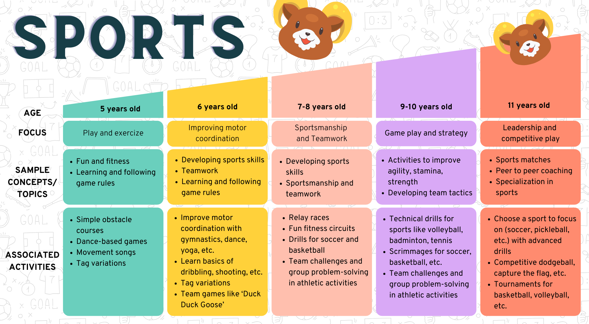 Through an exciting array of sports, children will enhance their athleticism and overall physical well-being. Activities will build their strength, endurance, and coordination, promoting a healthier and more active lifestyle.